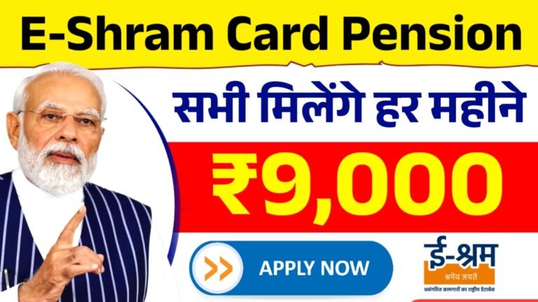 E-Shram Card Pension : ई-श्रम कार्ड वालों को मिल रहे है ₹9000 प्रति महीने, कैसे करें आवेदन पूरी जानकारी !!