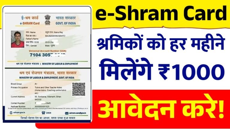 E Shram Card Pension Yojana: महिलाओं और पुरुषों को भी मिलेंगे प्रति महीना ₹3000, यहां से करे आवेदन !!