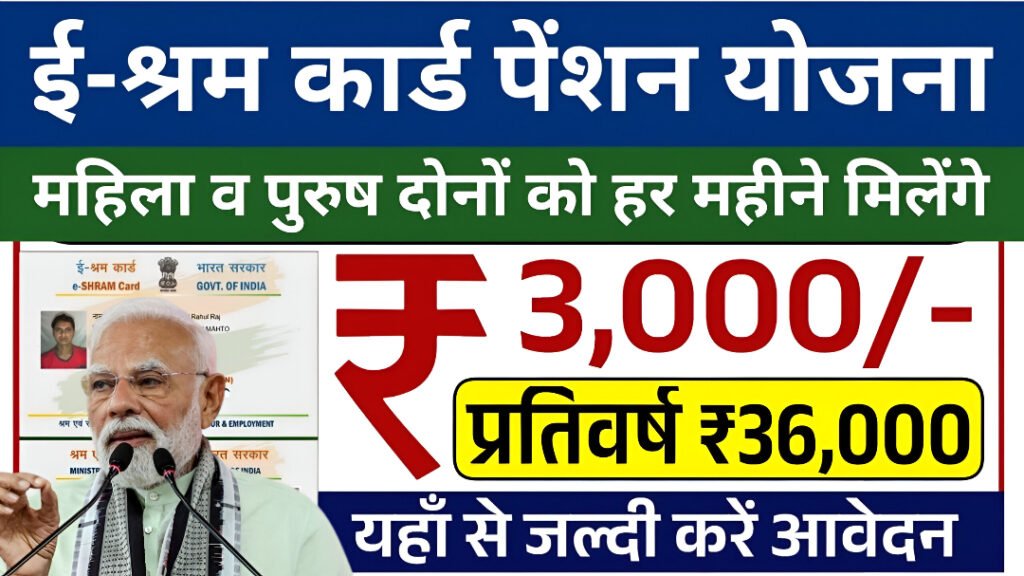 WhatsApp Group Join Now Telegram Group Join Now E Shram Card Pension Yojana: भारत सरकार द्वारा समय-समय पर असंगठित क्षेत्र में काम कर रहे हैं मजदूरों के लिए नई-नई योजनाएं शुरू की जाती हैं। और उन्हें आर्थिक सुरक्षा प्रदान करने के लिए ऐसी ही एक योजना ई-श्रम कार्ड योजना शुरू की गई थी। इस योजना को … Continue reading E Shram Card Pension Yojana: महिलाओं और पुरुषों को भी मिलेंगे प्रति महीना ₹3000, यहां से करे आवेदन !!